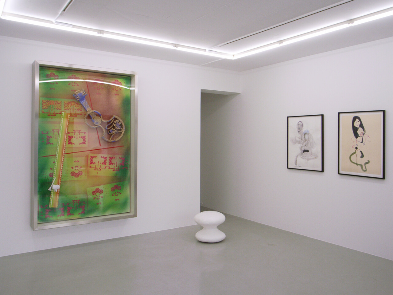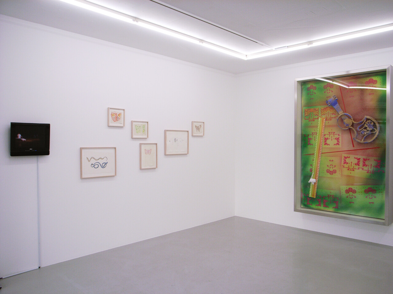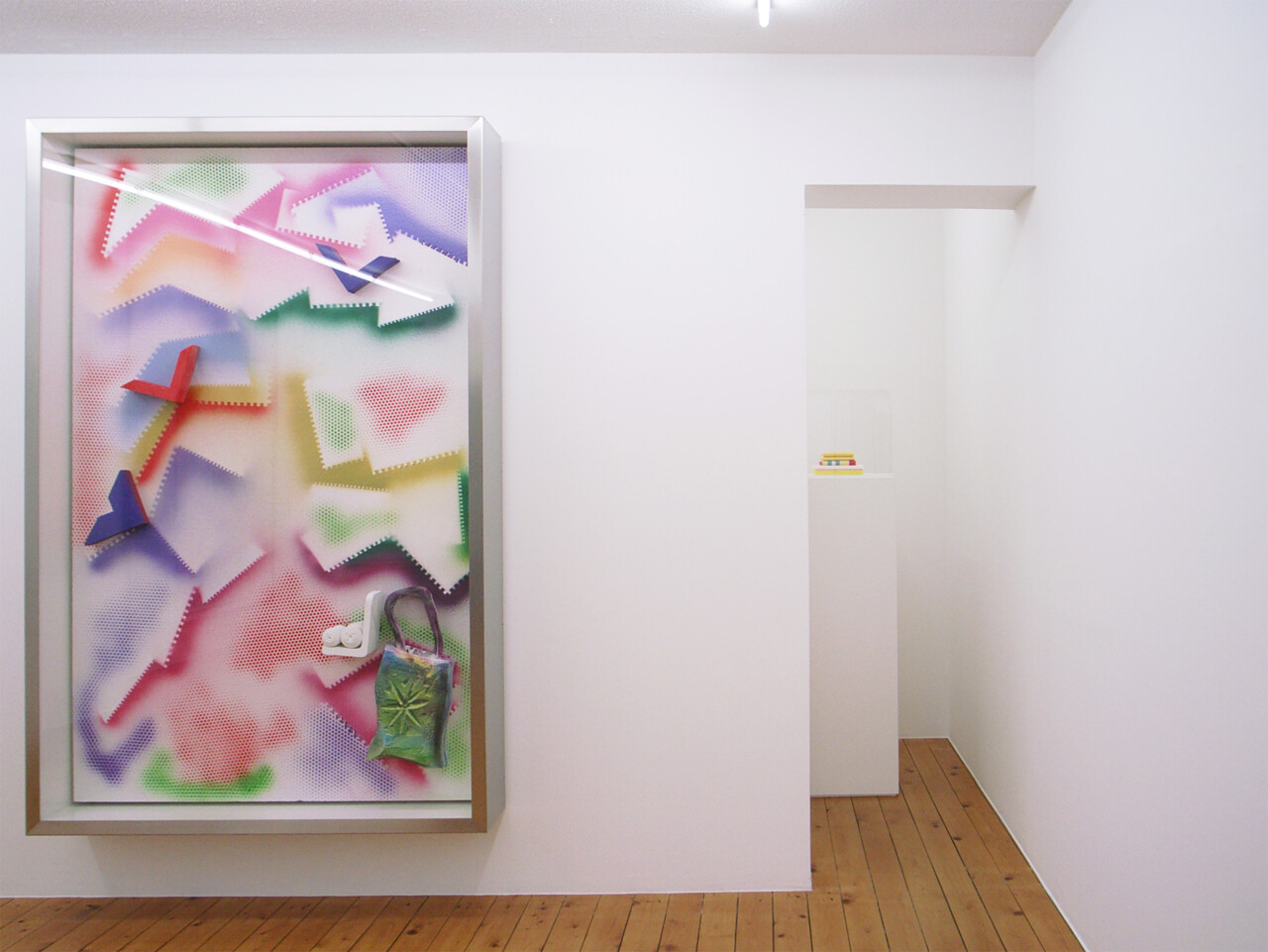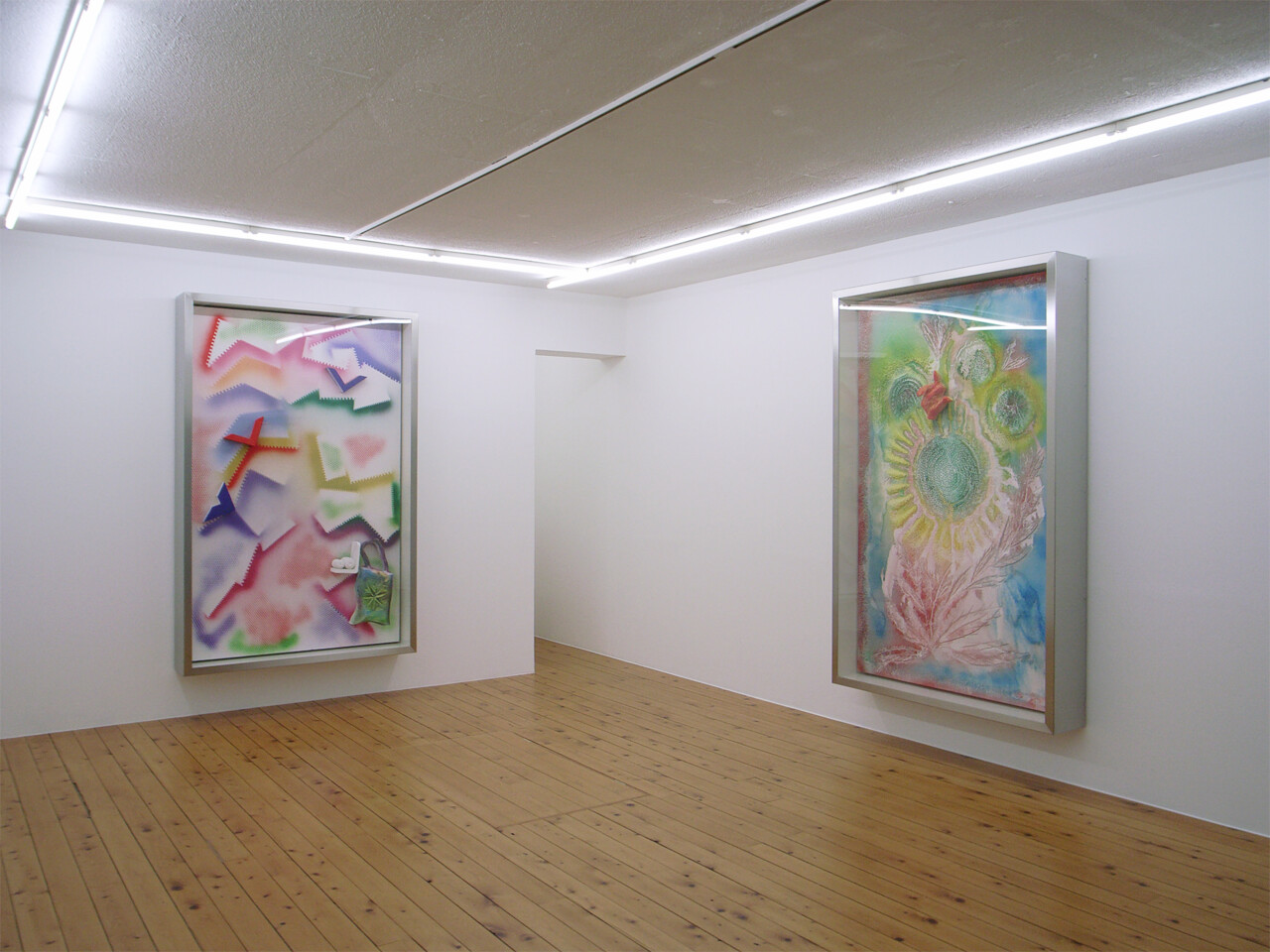 Opening Saturday, March 8, 2008, Wako Works of Art is very pleased to present the fourth and last installment of “Wako Works of Art: 15 Years.” This exhibition will include new works by Andreas Slominski, Joan Jonas, Mike Kelley, Gregor Schneider, and Henk Visch. Room 1 will present a solo exhibition of new sculptures and three-dimensional paintings by Slominski. On view in room 2 will be new watercolor paintings and drawings by Jonas accompanying a video of the artist’s performance “The Shape, The Scent, The Feel of Things” at Dia:Beacon, New York; new works by Mike Kelley related to his series Timeless Paintings; Schneider’s walk-through video of his Weisse Folter installation at K21 in Germany; and Visch’s sculpture from his Names series.